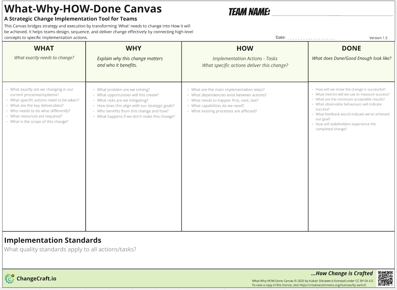 Whether you're launching a new initiative, fixing a broken process, or scaling what works—clarity is everything. This canvas helps teams bridge strategy and execution, ensuring everyone aligns on what needs to change, why it matters, how to make it happen, and how success will be measured.
